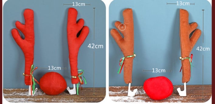 Pålitelige Kvalitet, Utsøkt Håndverk: Vi er dedikert til å gi deg et førsteklasses produkt. Laget av høykvalitets materialer, er våre jule-reinsdyrhorn fylt med perle bomull for en myk og holdbar følelse. Med innebygde klips er PVC-klipsene forsterket for å sikre stabilitet selv under kjøring i høy hastighet.