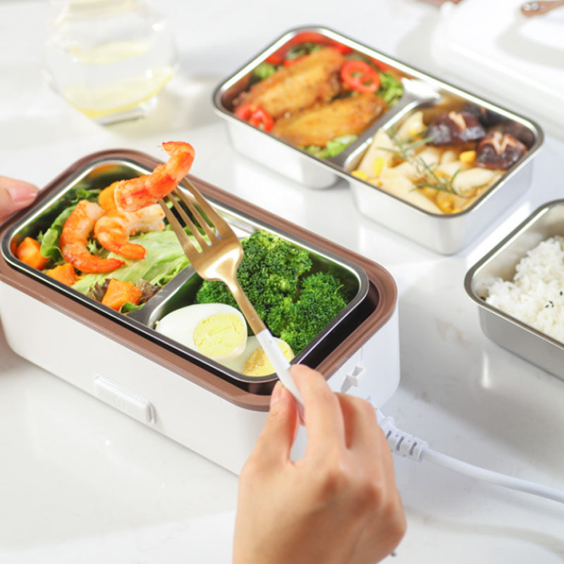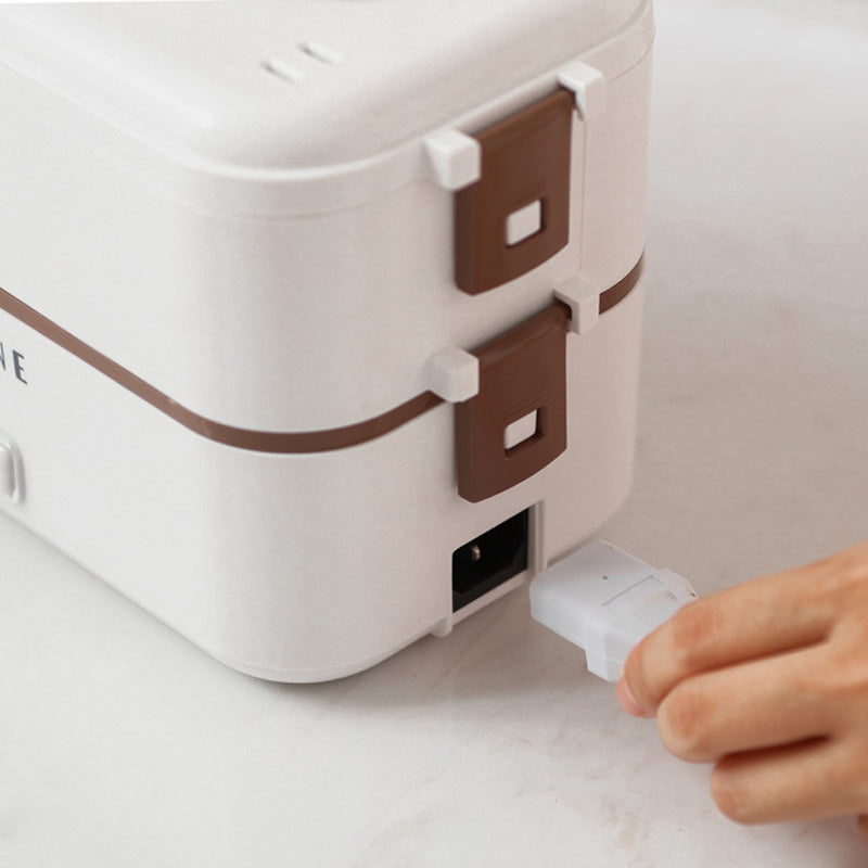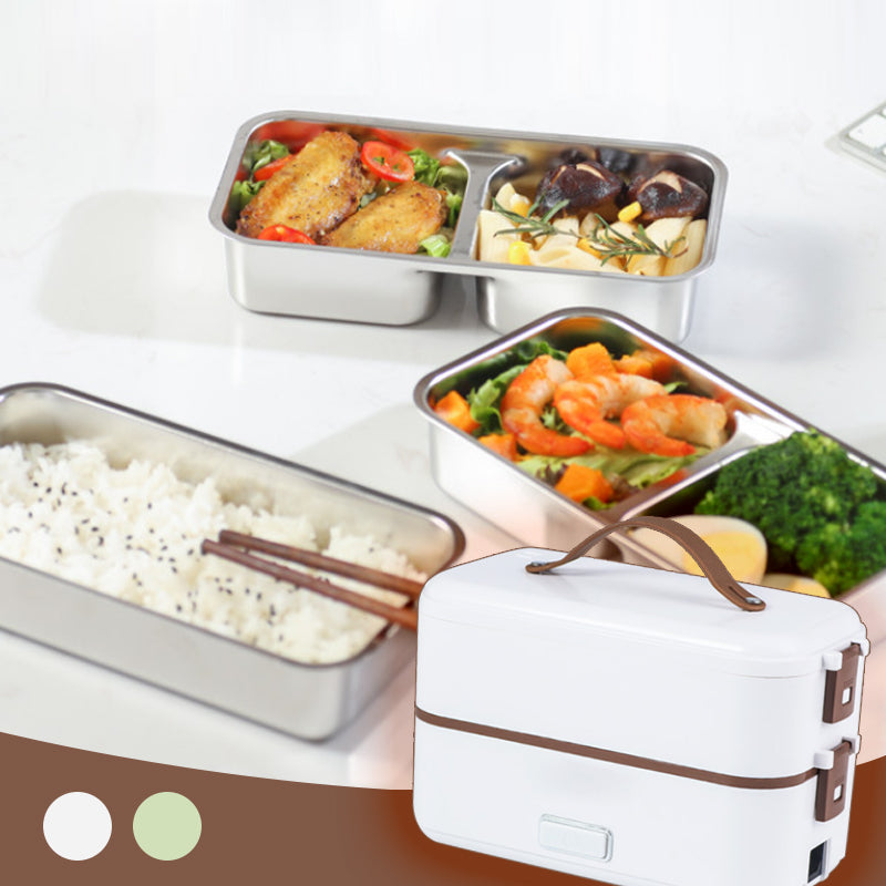 Allsidig: Denne bærbare matlagingboksen for lunsj kommer med to rustfrie stålskåler og kontakter, noe som gjør den ideell for både bruk på kontoret og hjemme. Enkelt å lage diverse måltider uansett hvor du måtte befinne deg.