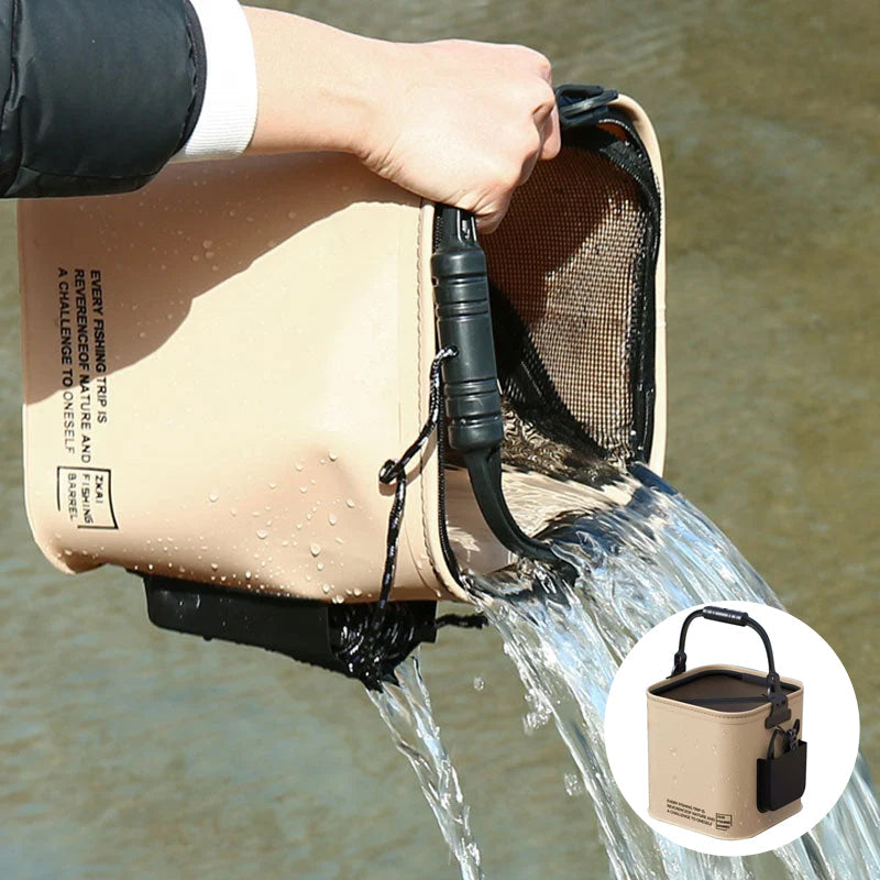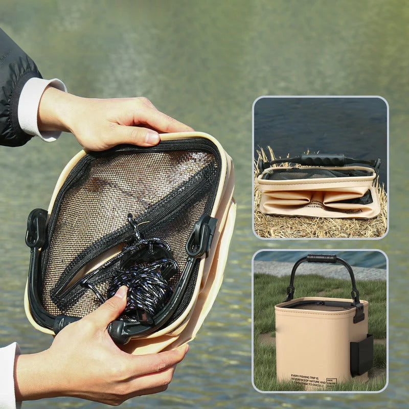 🐟SAMMENLEGGEBART DESIGN – Enten du kjører til din favoritt fiskeplass eller er på campingtur, sparer vår sammenleggbare bøtte verdifull plass i kjøretøyet eller ryggsekken, og sørger for at du kan ta den med deg uansett hvor du går.