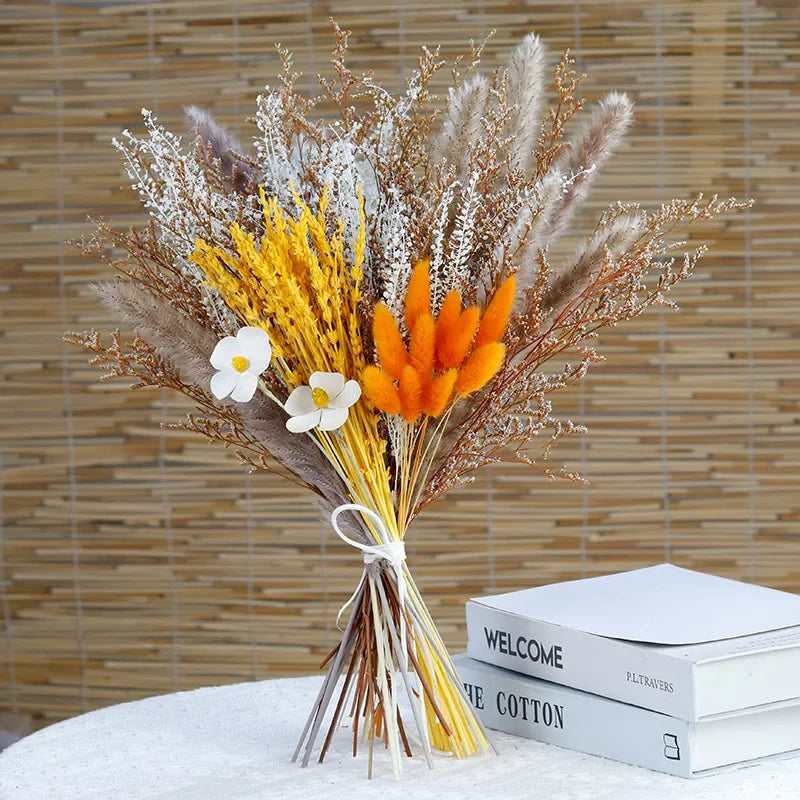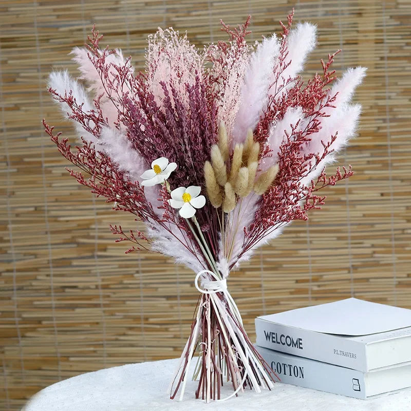 Low maintenance: Unlike live plants, fluffy pampas grass does not require special care. It maintains its fluffy and attractive appearance without the need for watering or sunlight, making it a practical option for home decor.