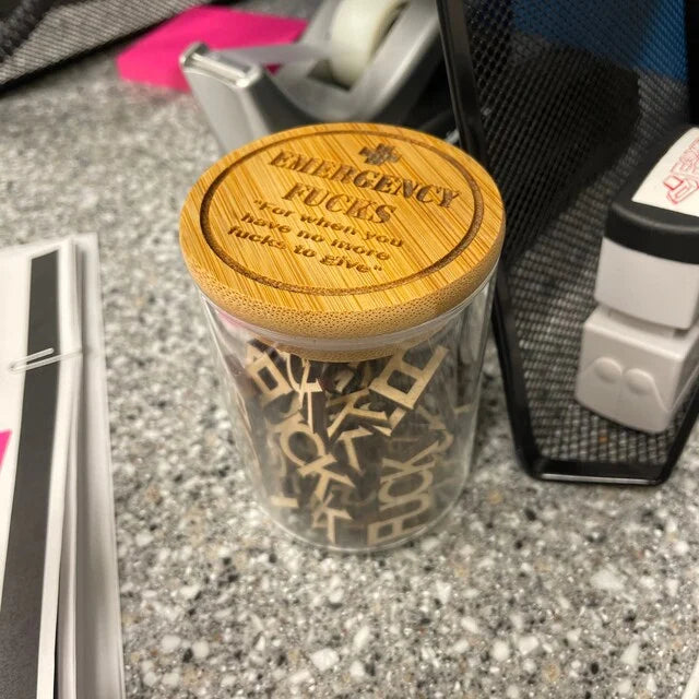 Nødssituasjon F*** - for de tidene når energien er helt fraværende. Disse stilige glassbeholderne er fylt med kunstneriske trefraser som uttrykker "F***." De vil helt klart få frem smil og er et utmerket valg for gaver!