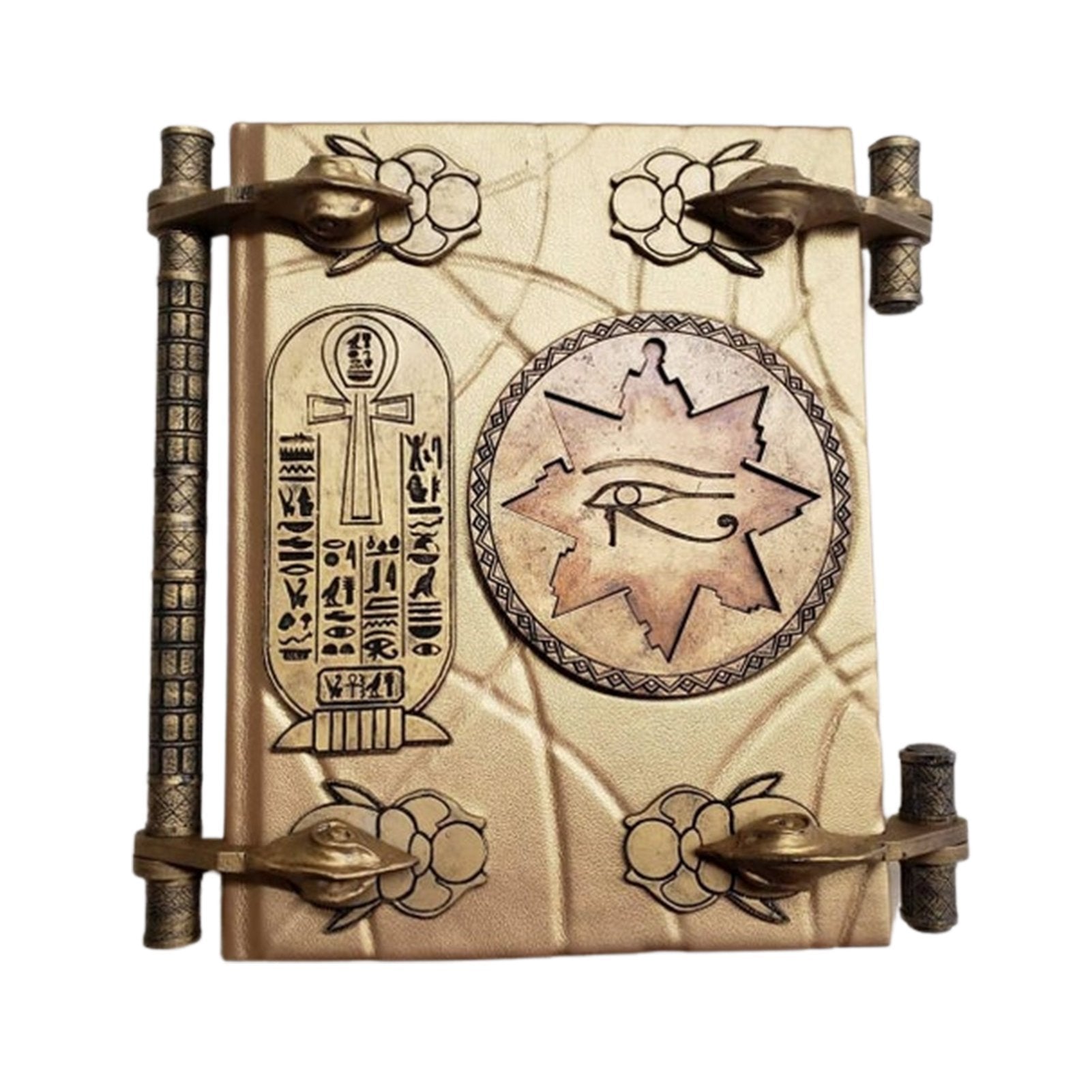 Tilgjengelig som en 19x16x4cm/7.5x56.3x1.6 i boken med blanke sider, eller for å ha hule rom som et smykkeskrin/oppbevaring, eller for å inneholde en faktisk bundet kopi av teksten til De dødes bok.