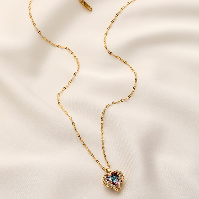 1x Ocean Heart Rustfritt Stål Zirkon Halskjede