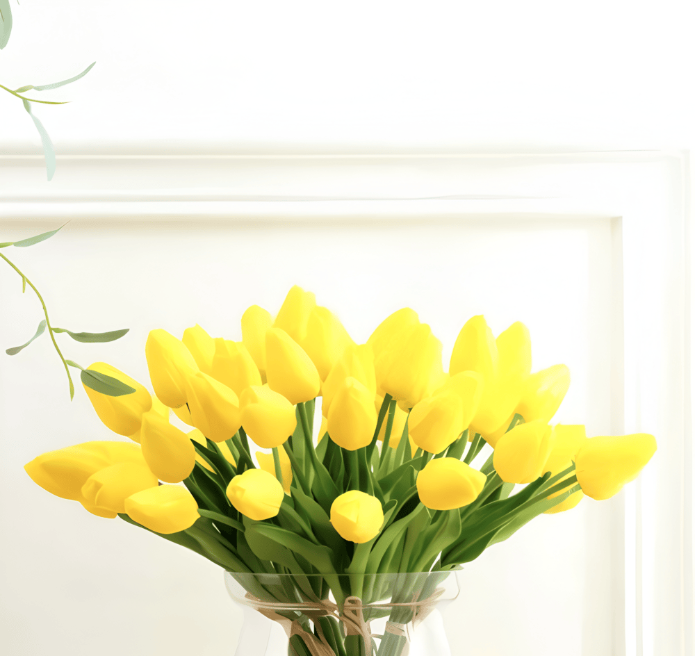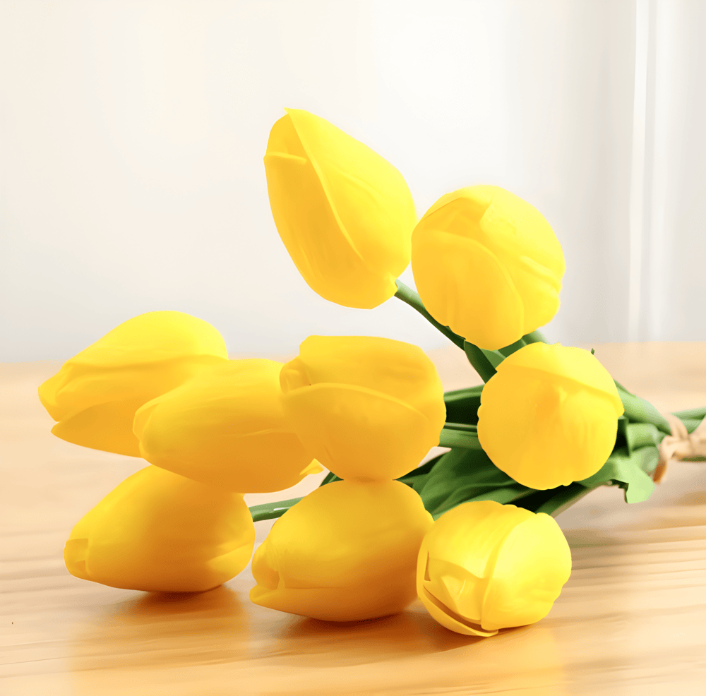 Dette settet med 6 realistiske kunstige tulipanbuketter tilfører farge og eleganse til ethvert rom, uten vann eller omsorg. Den høykvalitets finishen og livaktige detaljer gjør dem nesten umulige å skille fra ekte tulipaner. Perfekt for stuer, festbord, hagefester, eller som varig sesongdekorasjon.