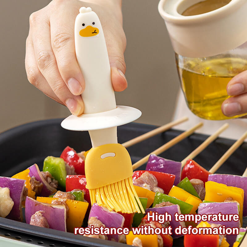 Den sjarmerende ande-designen på silikonbørsten gir presis oljekontroll og tilbyr mye praktisk nytte til matlagingen din. Flasken har en glassoljekanne med lokk som lar deg påføre med presisjon. Den beste gaven til en mor, kone eller datter.