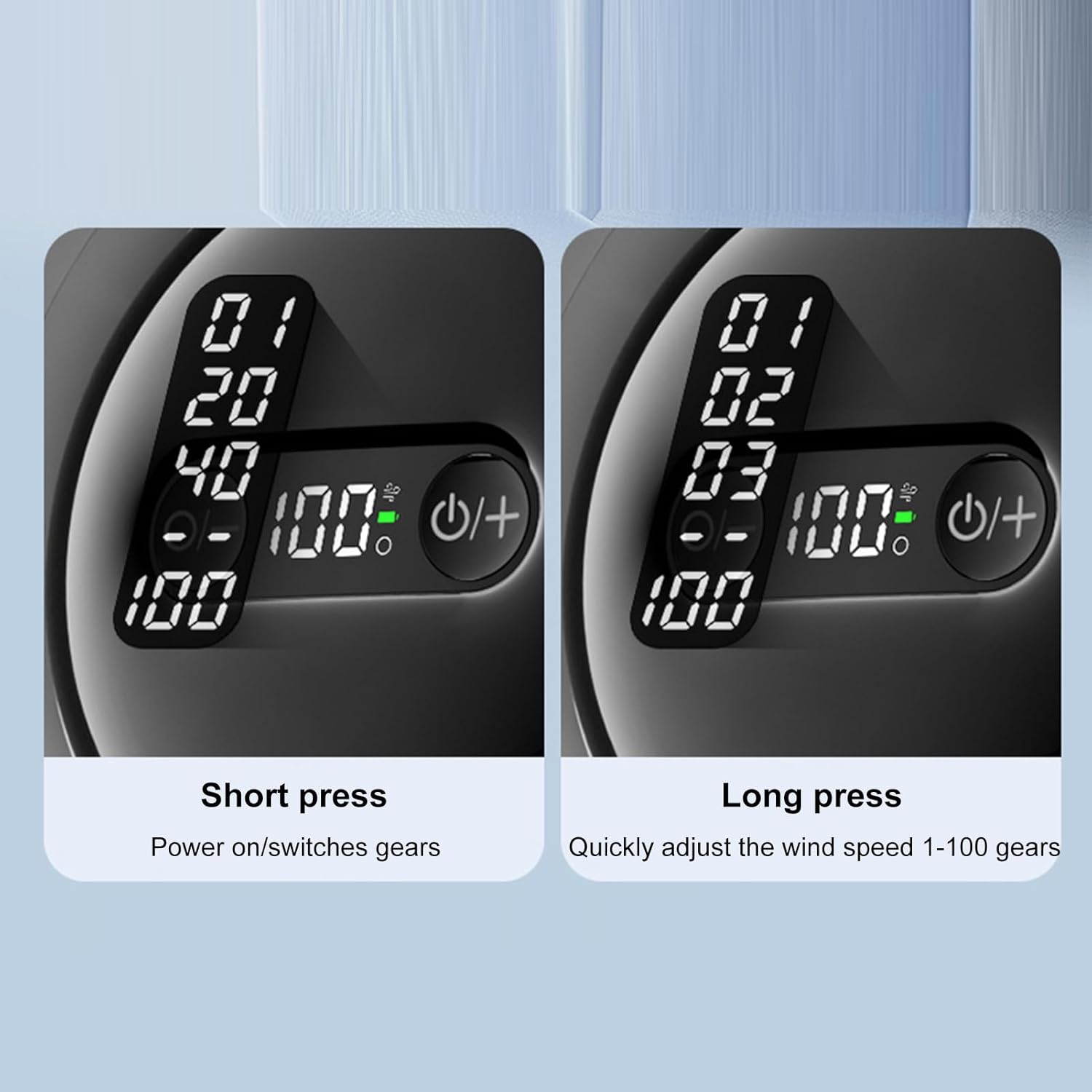 - 100-hastighets trinnløs vindkontroll med LED-display