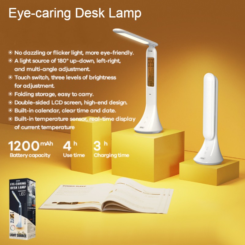 Norvo | Oppladbar Sammenleggbar Øyevennlig Skrivebordslampe, med Flimmerfri, Justerbar Lysstyrke, Tid, Dato & Temperaturskärm