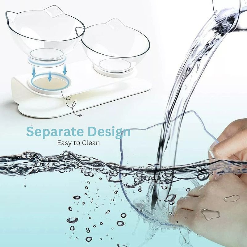 Med en praktisk avtakbar design, gjør vår kattemat skål rengjøring til en enkel oppgave. Bare løsne skålene fra basen for en grundig og enkel vask, og hold kattens matingområde rent og hygienisk med minimalt med ulempe.