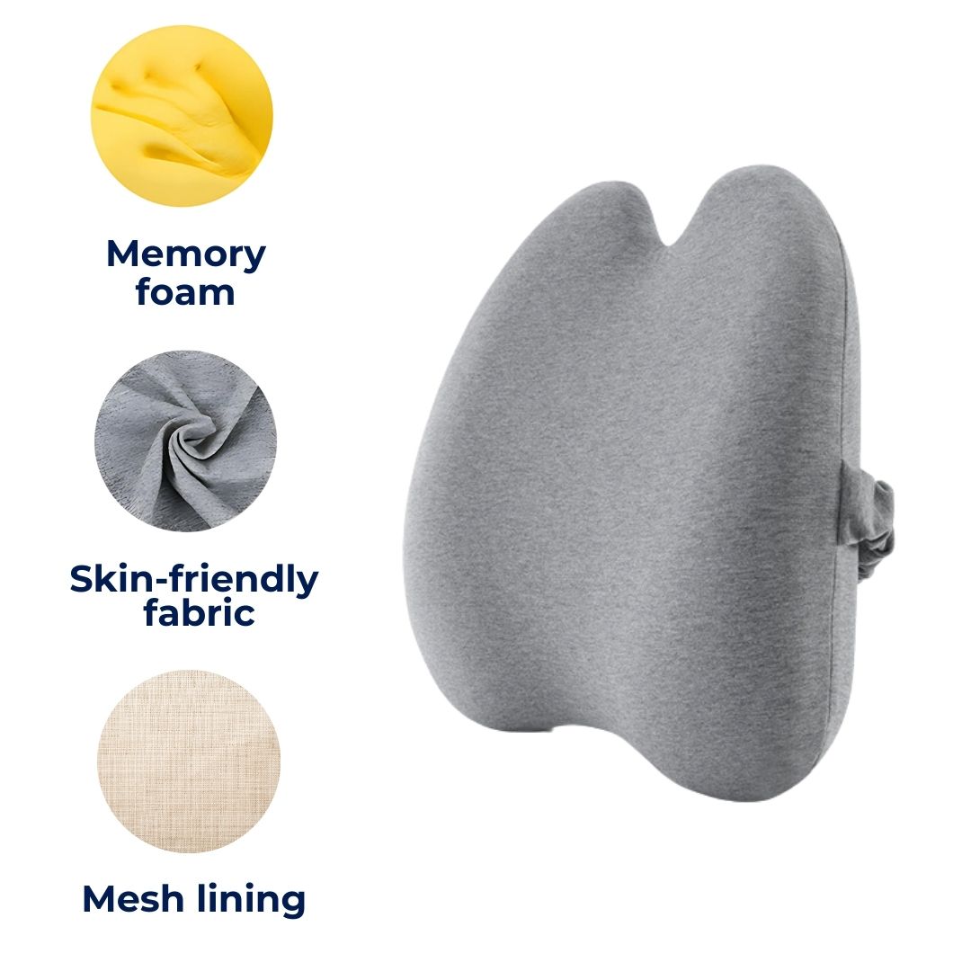 Den fremmer korrekt holdning og gir støtte til korsryggen, avlaster trykket på ryggraden og halebeinet, som bidrar til å redusere ryggsmerter og ubehag ved langvarig sitting.