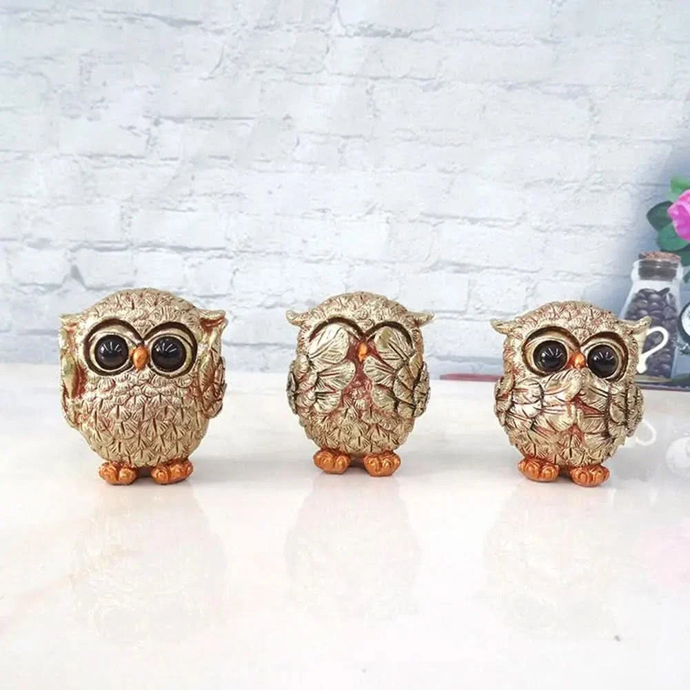 Norvo | OWLUXE – Dekorativ skulptur i antikk gull, håndlaget uglefigur "Se ingenting, hør ingenting, si ingenting"