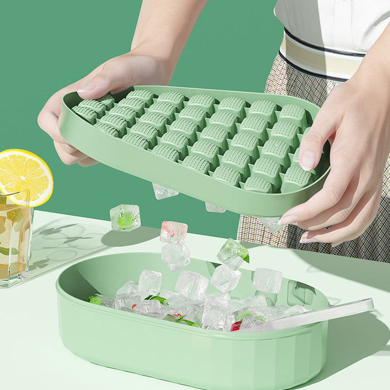 【Matkvalitetsmaterialer】 Isbitformen er laget av matkvalitets PP- og silikonmaterialer, noe som sikrer sikkerhet og holdbarhet. Hver isbitform lager 36 attraktive nugget-biter. Både brettet og øsen er laget av solid PP, konstruert for å vare.
