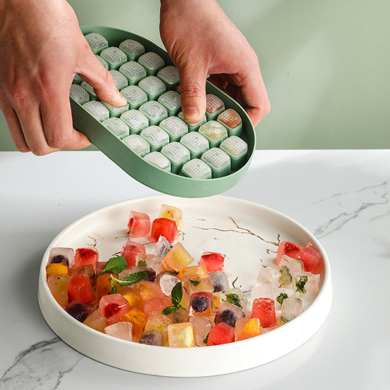【Flere bruksområder】 I tillegg til vann, kan du også tilføre frukt, havremelk, brus, cocktailer, osv., til isbitbrettet for å skreddersy dine favorittsmaker, noe som gjør det perfekt for familiesammenkomster, fester, gaver, og mer.