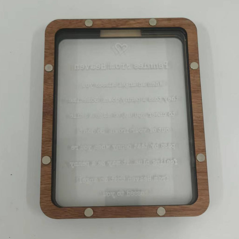 Vegghylle eller Bordstativ - Vår minnes sparer har en krok og et stativ på baksiden, slik at den kan benyttes både som vegg- og borddekor. Det klare, semi-forsterkede glasset i skyggeboksen inneholder inspirerende sitater, noe som gjør den helt spesiell.