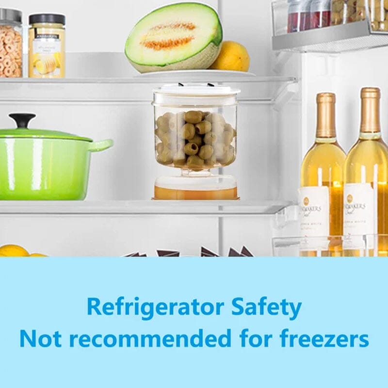 Er du glad i oliven og sylteagurker, men finner det utfordrende å få dem ut av glasset? Da er sylterbeholderen akkurat det perfekte tilbehøret for deg! Denne allsidige syltekrukken har et unikt timeglassdesign med en saftseparatør for ekstra brukervennlighet og praktiskhet.