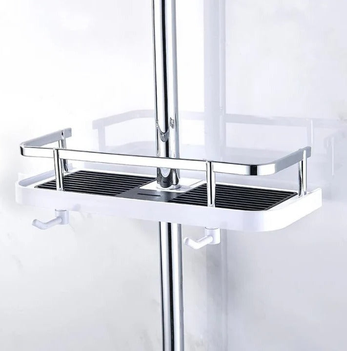 Dette veggmonterte dusjhyllet er designet for å holde flasker, såper og forskjellige artikler på badet ditt. Den tiererte utformingen gir hevet lagring uten å ta opp gulvplass, noe som gjør den ideell for kompakte områder.