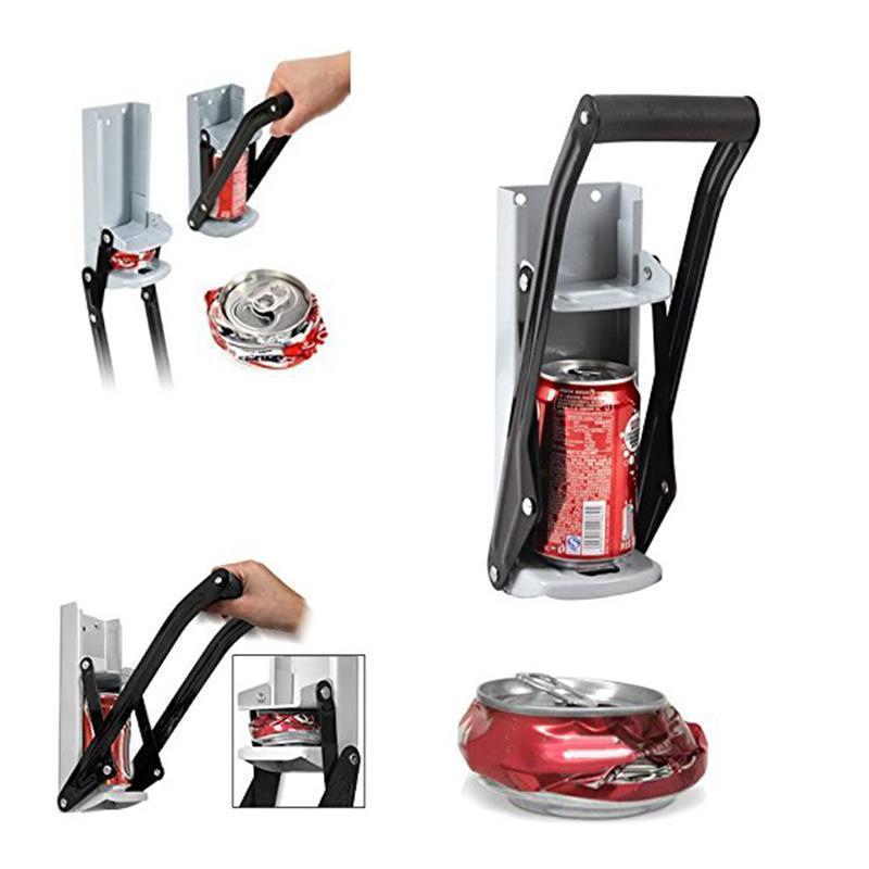 DESIGN: Et enkelt og lett verktøy med et komfortabelt grep, som lar deg knuse metall til omtrent 20% av sin opprinnelige størrelse, noe som bidrar til å frigjøre verdifull plass. Den innebygde flaskåpneren er strategisk plassert på bunnen for enkel tilgang og kan monteres vertikalt på veggen med de inkluderte skruene.