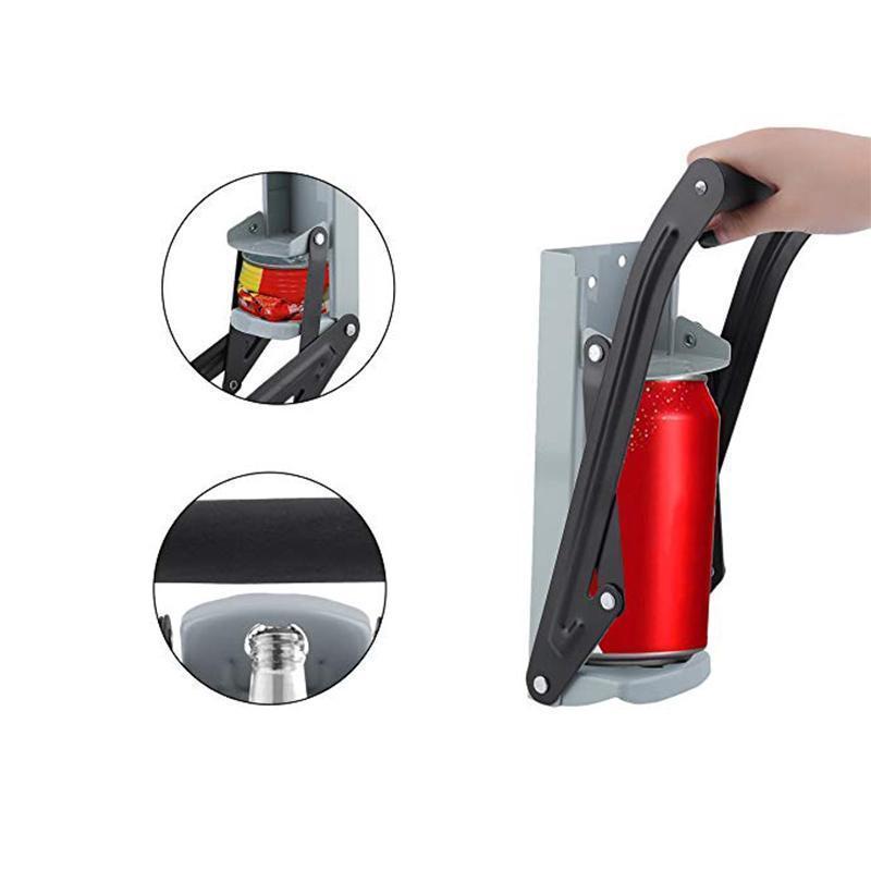 En manuell kvern og boksåpner designet for vegg- og bordmontering, slik at du kan komprimere aluminiumsdrikkebokser og brusbeholdere, samtidig som du åpner ølbokser.
