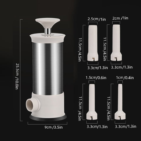 【Sikre og holdbare materialer】 Vår pølsemaker er laget av matvennlig 304 rustfritt stål og PP-materialer, som sikrer at den er både sterk og varig. Den er et flott valg for pølselaging.