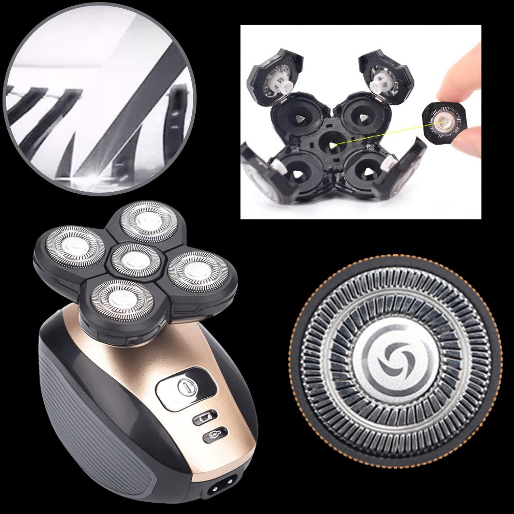 Den elektriske barbermaskinen med 5 blader er utviklet for en fullstendig barberingsopplevelse enten hjemme eller på farten. Med sitt 4D flyttbare hodesystem, kan den brukes både til ansikts- og hodepleie. Enheten har en brukervennlig trådløs drift med USB-lading, som gjør den ideell for daglig bruk.