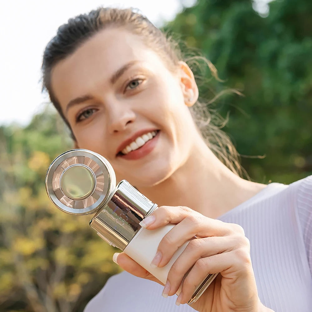 Utviklet for enkel bæring, kan flaken lett foldes sammen til en kompakt form som passer perfekt i ryggsekker eller bagasje. Det slanke designet gjør det ideelt for daglig bruk eller lengre reiser, og den justerbare vinkelen sikrer at luftstrømmen fokuseres akkurat der du trenger det.