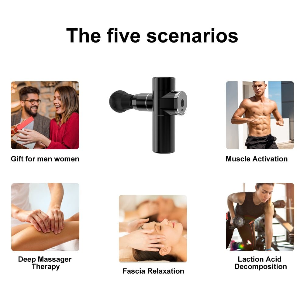Dypvevsmassasjepistol fokuserer på dype muskler og bindevev. Hjelper med å lindre muskelstivhet og ubehag, og forbedrer helsen til bløtvev i hele kroppen. Den hjelper også med å eliminere tretthet og hjelper deg å slappe av bedre.
