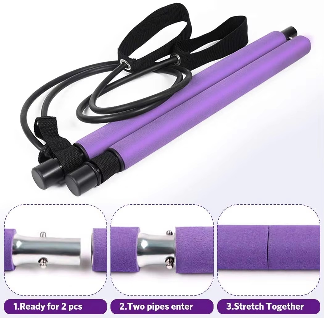 Se for deg… å prøve å få tid til trening med begrenset tid eller plass. Denne portable Pilates-stangen med motstandsbånd gjør ethvert rom til en komplett treningszone, slik at du kan tone og styrke uten store maskiner.