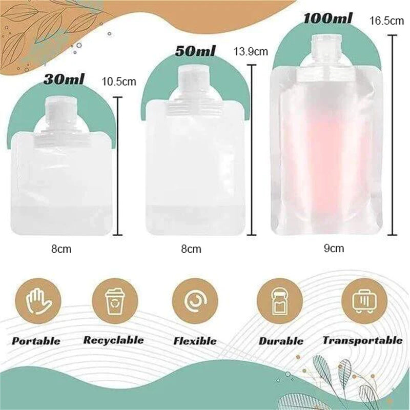 💕 STØRRELSE & INNHOLD --- Inkluderer 10 stk oppbevaringsposer for flytende kosmetikk, tilstrekkelig for å dekke behovene dine. Finns i 3 ulike størrelser: 30 ml, 50 ml, 100 ml. Vennligst velg NØYAKTIG den STØRRELSEN du trenger.