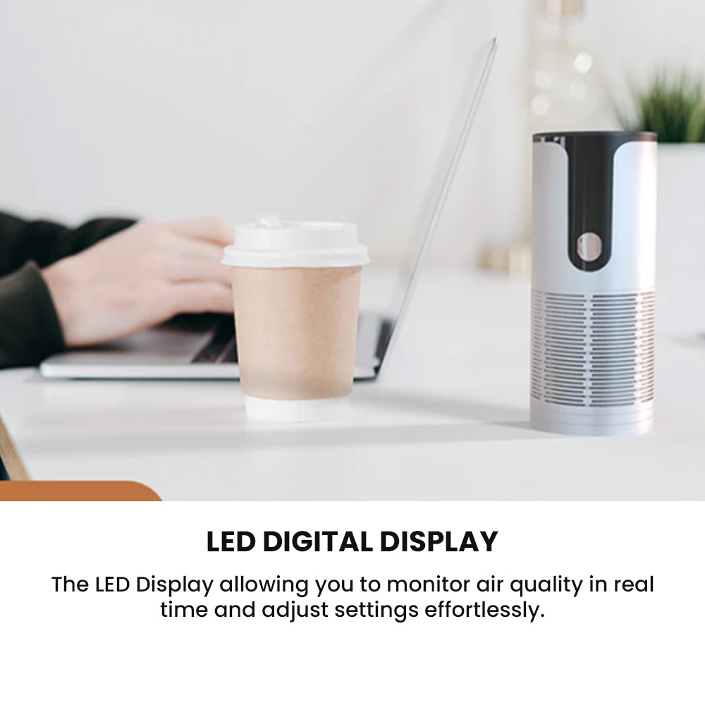 Opplev ren og frisk luft uansett hvor du befinner deg med denne bærbare luftrenseren. Med sitt kompakte design og et integrert 1200mAh oppladbart batteri er den perfekt for små rom som skrivebord, biler eller reiser. Den er lett å lade via USB og gir effektiv rensing hvor som helst.
