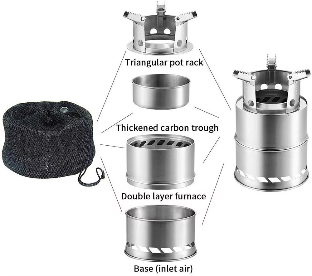 Norvo | Bærbar Rustfritt Stål Vedfyrt Campingkomfyr - Lett Utendørs Koker for Reise og BBQ