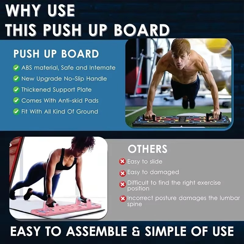 Forestille deg… å ha problemer med å opprettholde din treningsrutine på treningssenteret eller å få til en effektiv økt i et trangt rom. Dette sammenleggbare push-up brettet tilbyr spesialisert styrketrening i stuen din—uten klumpete utstyr eller kostbare medlemskap.