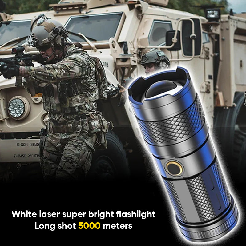 - Oppgrader den hvite laserlysestaken for å få en lysstyrke som er ti ganger sterkere! - Den nyeste lasermodulen, med en nøyaktighet sammenlignbar med presisjonen til et snikskyttergevær, vil ikke redusere lysstyrken, uansett hvor langt unna du er, og den kan projisere et jevnt lys langt utover synlig rekkevidde.