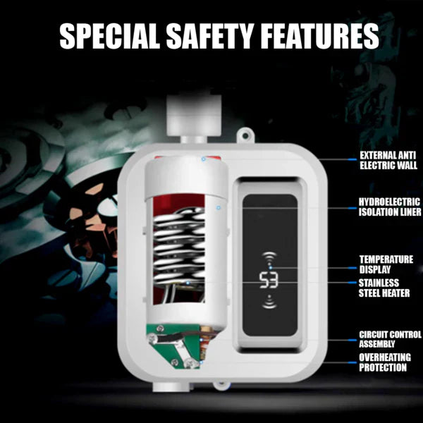 - Øyeblikkelig Varmt Vann: Nyt varmt vann etter behov. Med bærbar vannvarmer teknologi har du en kontinuerlig tilførsel av varmt vann for å tilfredsstille dine livsstilsbehov.