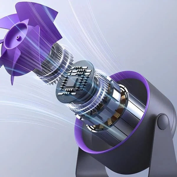 Denne viften er utstyrt med en turbinmotor som fjerner eksponeringen for blader. Gjennom sin bladløse teknologi gir den stille drift og reduserer risikoen for ulykker, noe som gjør den til et sikrere valg for rom med barn eller kjæledyr. Den distribuerer luft jevnt, og gir fremragende kjøling for små til mellomstore rom.
