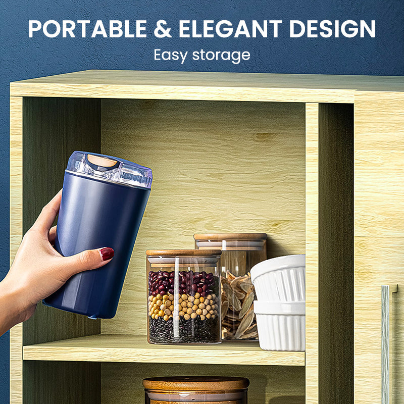 - Hurtig Kverning: Trykk på knappen for å sette i gang den elektriske kvernen, og slipp for å stoppe. Ulike ingredienser kan males hurtig og gir et fint pulver på bare noen sekunder. Den kraftige motoren med høy hastighet og et førsteklasses rustfritt stålblad garanterer en effektiv kverneopplevelse med enestående finhet. Du kan oppnå perfekt kvernet pulver på 20 sekunder. Ideelt for å lage din egen kaffe til en deilig kopp.