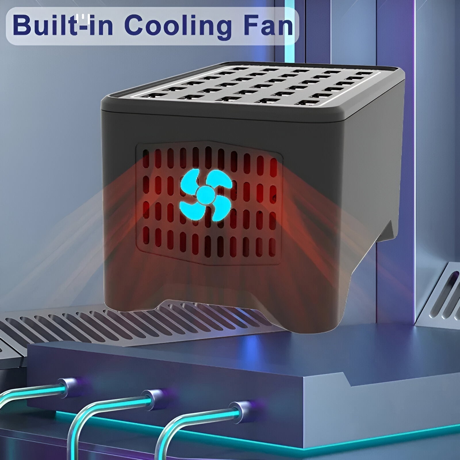Utstyrt med innebygd kjølevifte og skridsikker base for trygg, effektiv lading uten overoppheting eller glidning.
