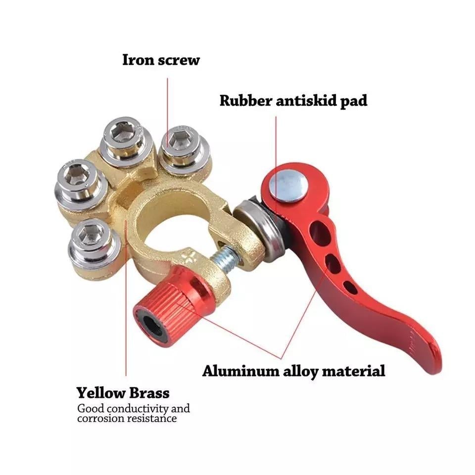 Terminalene selv er laget av messing, og festene er laget av rustfritt stål for å gi maksimal vanntett og batterisyremotstand, samtidig som de gir de elektriske forbindelsene som kreves for å drive elektroniske enheter.