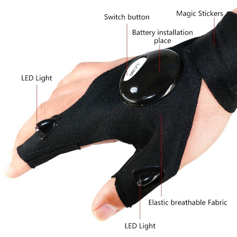 Glove Light gir deg lys på den mest praktiske måten mulig. Den festes på hånden din og lar deg lyse der du peker fingrene. Den er perfekt for mørke områder som trenger lys for å jobbe i. Flott for oppussingsjobber eller hvis du bare trenger litt ekstra lys.
