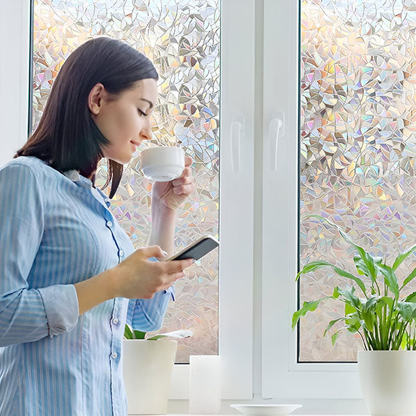 PrismaGlow danner umiddelbart et vern mot nysgjerrige nærsyn – helt uten boring eller lim.