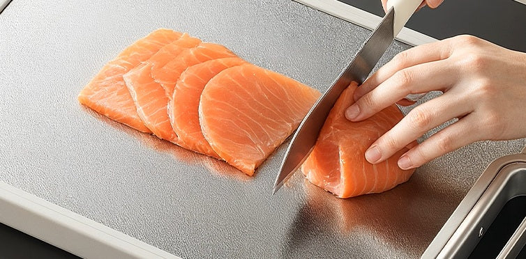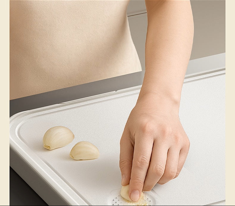 Dette todelte skjærebrettet laget av rent titan er antibakterielt, motstandsdyktig mot mugg, og trygt å bruke til mat. Piff opp ditt kjøkken med dette solide og hygieniske verktøyet!