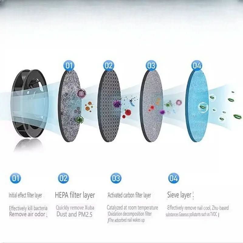 - Funksjoner: HEPA-filter, negativ ioneteknologi, USB-lading
