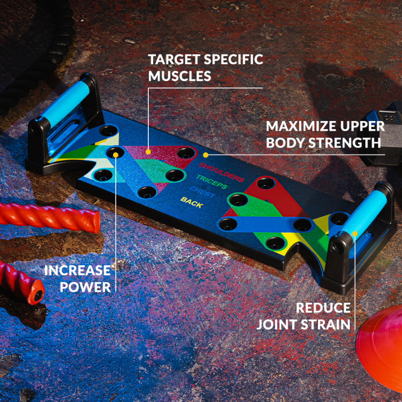 PushMaster Elite gir deg et innovativt system for effektiv og ergonomisk trening – alt uten å måtte besøke et kostbart gym. De fargekodede håndtakene lar deg fokusere på skuldre, bryst, rygg og triceps – med optimal teknikk og minimal risiko for skader.