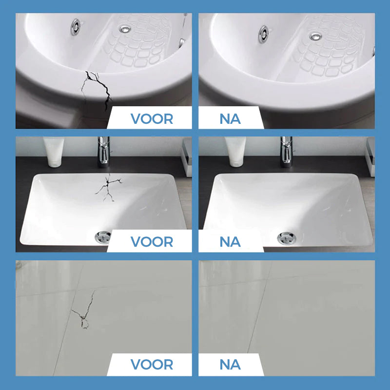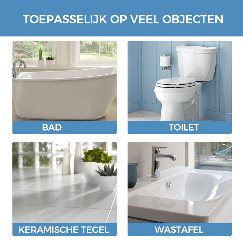 Bruksområde- Bruk den til å reparere fliser, riper, bulker, sprekker, slitte deler og hull på alle porselen- og keramiske overflater som badekar, Norvo, dusjer, vasker og sminkebord. Fungerer også på fiberglass, stein og plastmaterialer.