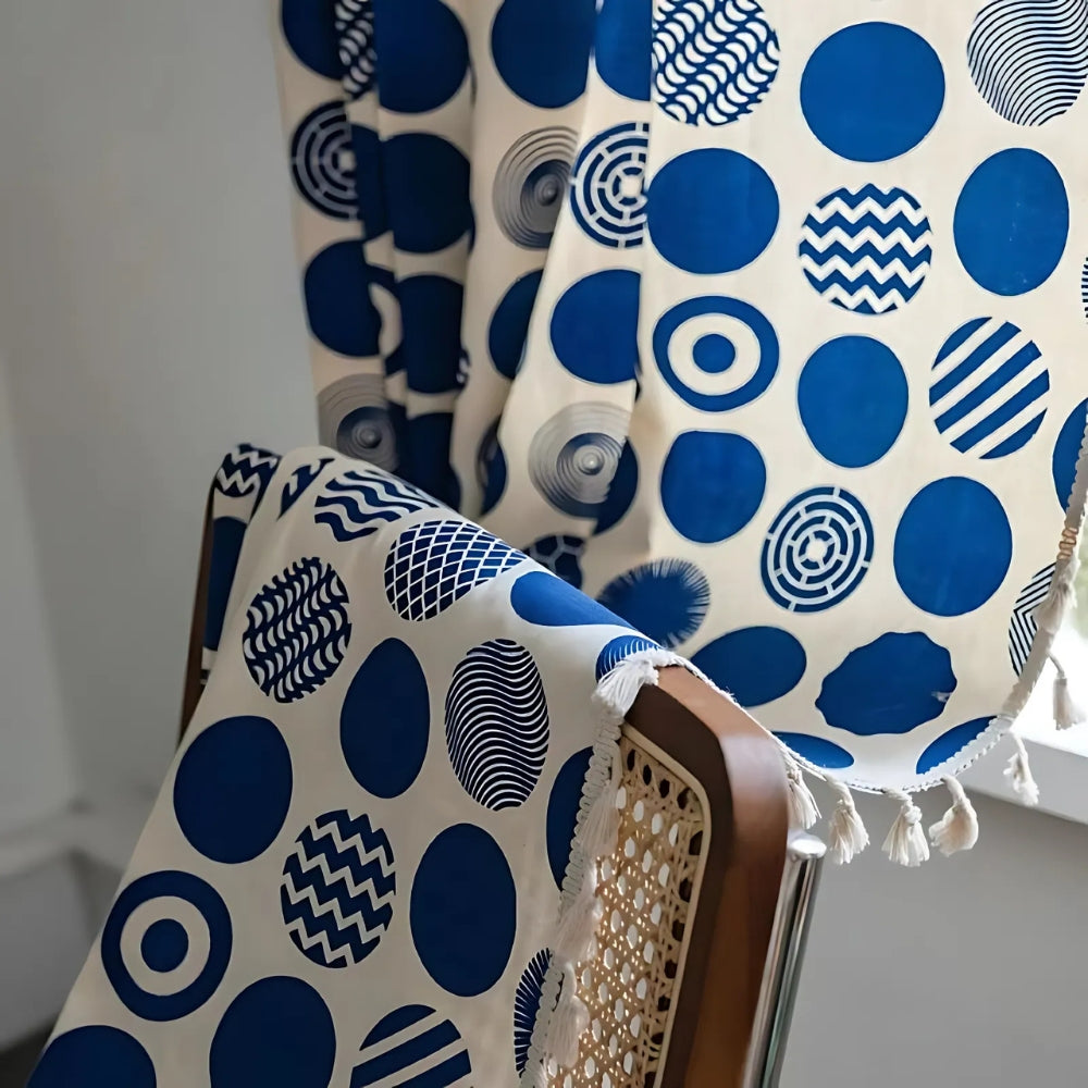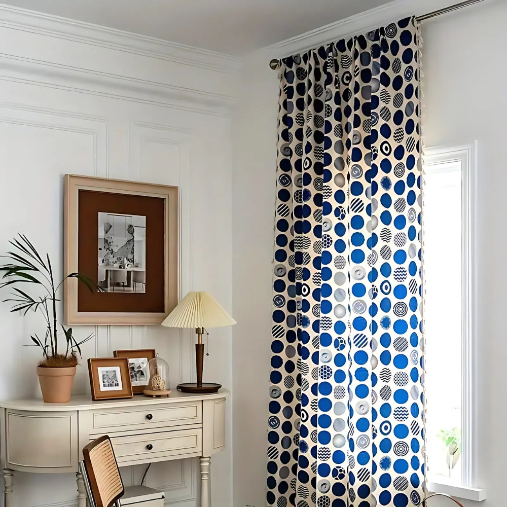 Norvo | Retro Blå Prikkete Mønstrete Vindu Gardin