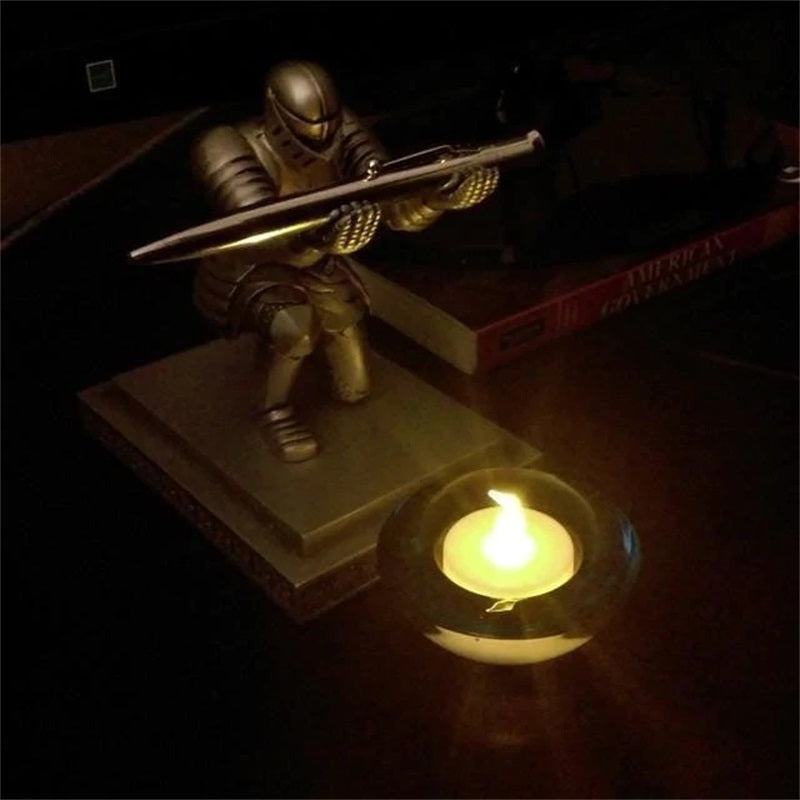 Hvis du ikke har en god pennestativ, gjør du tydeligvis livet feil. Det er ingenting bedre i livet enn å ta pennen din fra en solid holder og føle at du skriver ned noe viktig. Denne ridder pennestativet er en unik statue for kontoret ditt som skildrer en middelaldersk ridder som bøyer seg og holder pennen din ut mot deg som om du var hans konge og pennen er ditt sverd. Han bøyer seg foran deg og gir deg pennen din, og du kan nesten høre ham hviske til deg: "Din penn, Deres Majestet". Oppdatering: Hva ville et ridder pennestativ vært uten en sverd penn?