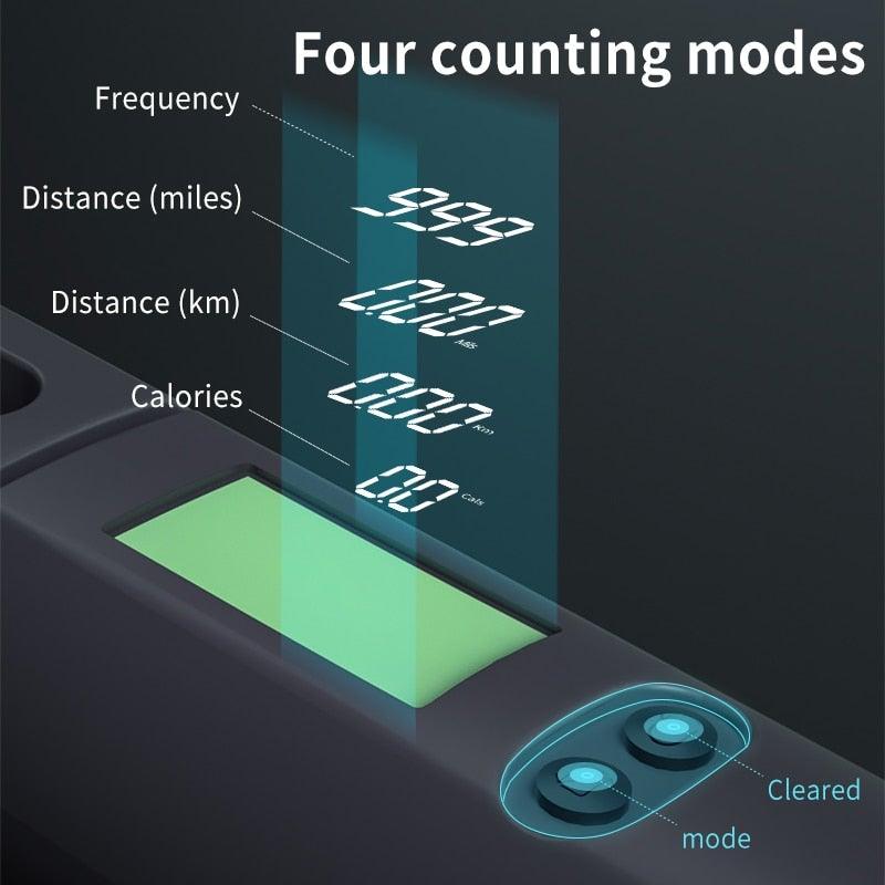 HOPPESELE TELLER: Denne hoppe-seilen er utstyrt med en integrert digital teller som benytter et presist magnetisk sensorsystem. Basert på vekten din og treningsøkten, kalkulerer Space Jump Rope nøyaktig hvor mange kalorier du forbrenner. Den kompakte skjermen viser informasjon om tid, vekt, kalorier og runder, noe som hjelper deg å følge med på fremgangen din. I tillegg er det en akustisk lydsignal som varsler når du når treningsmålet.