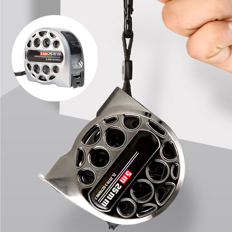 KVALITETSSTÅL: Rustfrie ståldeler gjør målebåndet solid, motstandsdyktig mot rust og mer holdbart. Inkluderer rustfritt stål blad og fjær. Hele enheten er slag- og rustbestandig.