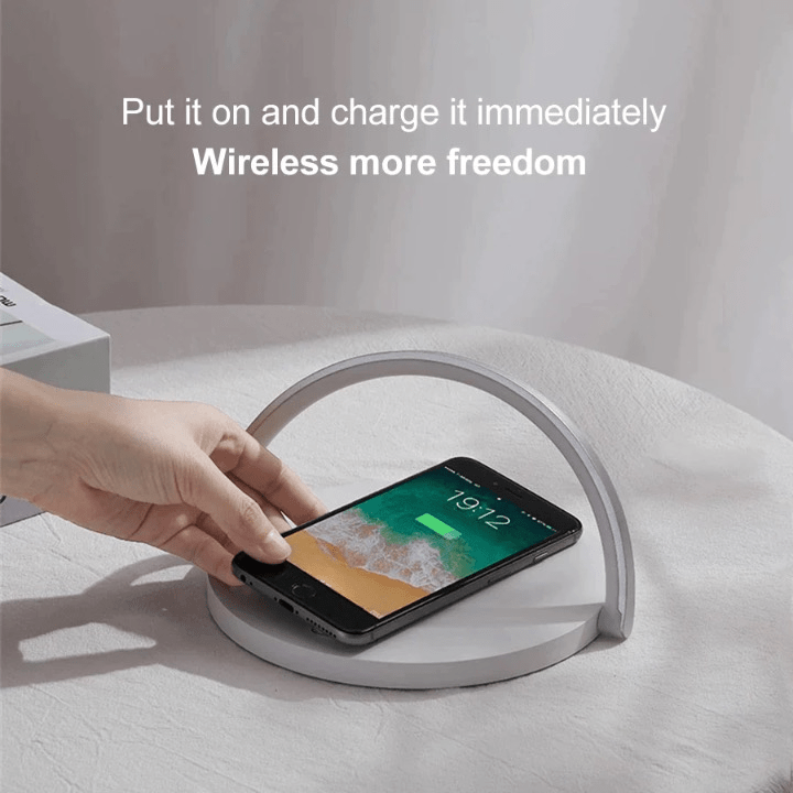 Alt-i-én bekvemmelighet: Denne allsidige enheten kombinerer en trådløs lader, telefonholder og lampe i ett stilrent design, som sparer plass og reduserer rot.