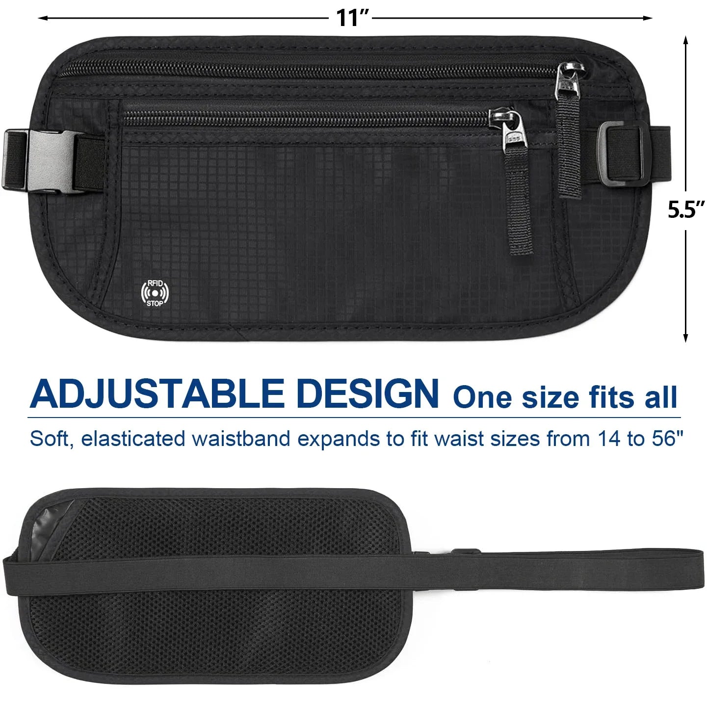 Norvo | SafeTraveler Midjeveske | RFID Beskyttelse | Skjult Sikkerhetslomme | For Menn & Kvinner
