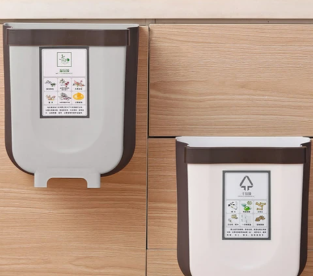 Norvo | Sammenleggbar Kjøkkenskapdør Hengende Skrallebøtte, med Søppelpose Festestropp og Sterk Belastningskapasitet, for Kjøkken, Bad, Bil og Mer