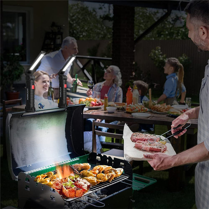 - 360 graders rotasjon & magnetisk base: Den 360 graders rotasjonen gir fleksibel belysning fra ulike vinkler, mens magnetbasen gjør det enkelt å feste den til metallflater, slik at hendene dine er fri til å gjøre annet arbeid om natten. De er ideelle for grillfester, camping, lesing, bilreparasjoner og andre aktiviteter om natten.